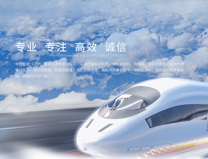 中創智造(遼寧)軌道交通有限公司是一家生產鋼軌鉆孔機、鋼軌鋸軌機、搗固鎬、鋼軌打磨機、軌枕內燃螺栓扳手、液壓方枕器、軌縫調整器、液壓起拔道器、軌枕內燃螺栓扳手、鋼軌拉伸機、高鐵器材等養路機械、線路扣件的廠家。